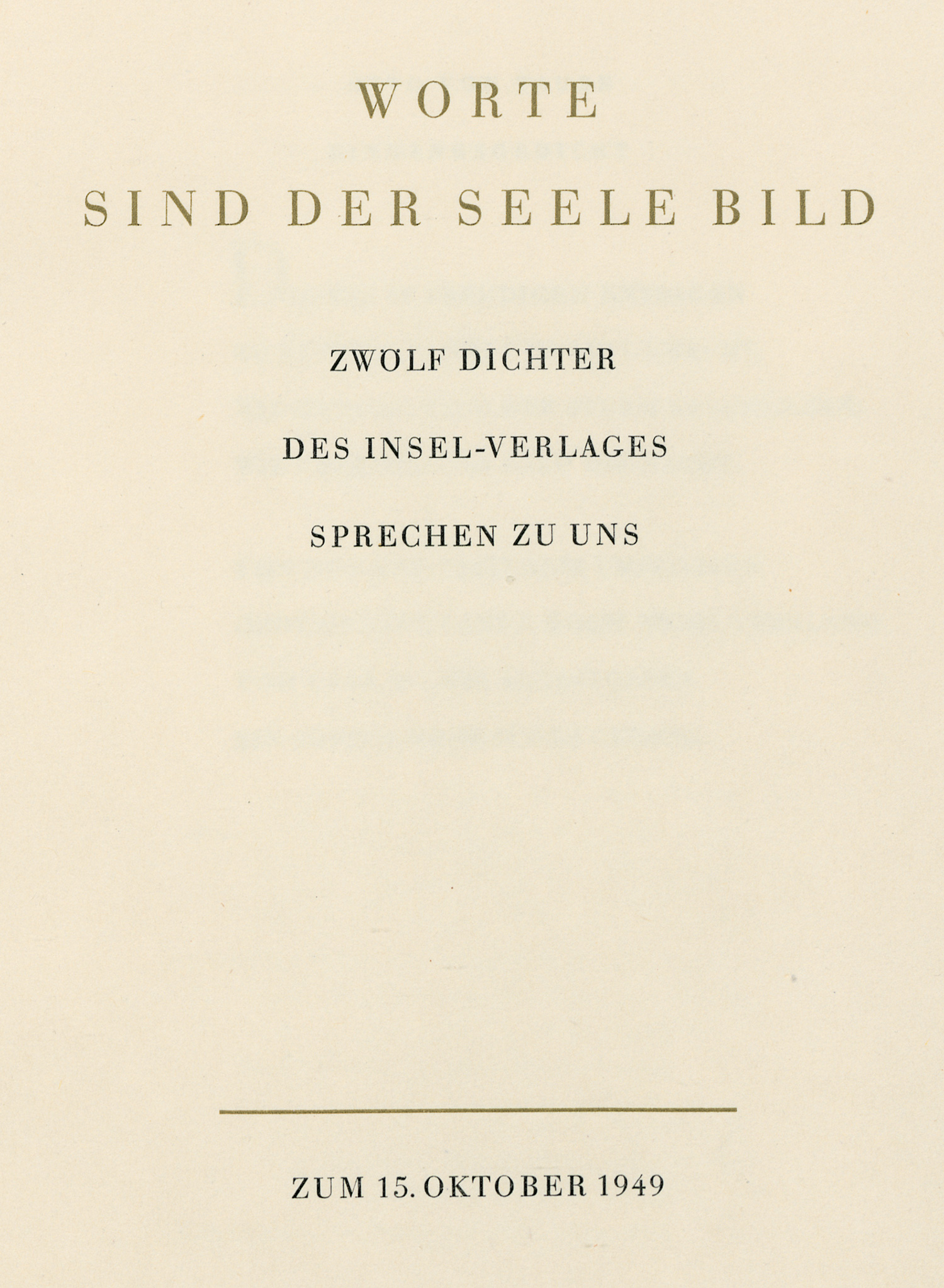 Insel-Verlag. - Worte sind der Seele Bild. Zwölf Dichter des Insel-Verlages sprechen zu uns. 31,5x 22 cm. OHalbleinen mit VDGoldprägung (berieben und mit Schabspuren). Leipzig, Insel 1949.