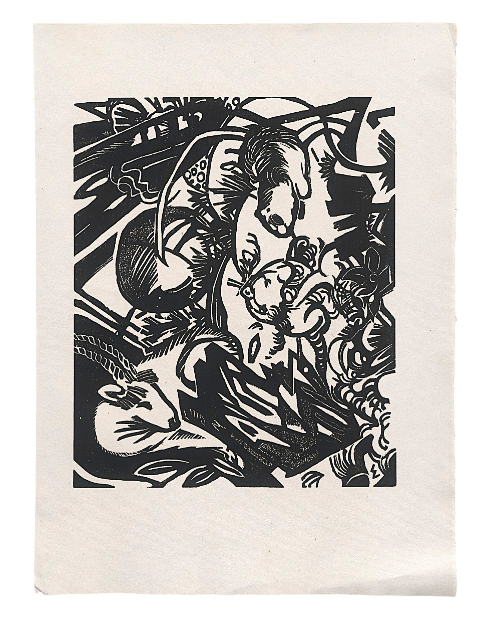 Marc, Franz. Aus der Tierlegende. Original-Holzschnitt. 19,5 x 24 cm (Darstellung) bzw. 26 x 35 cm (Blatt). 1919.