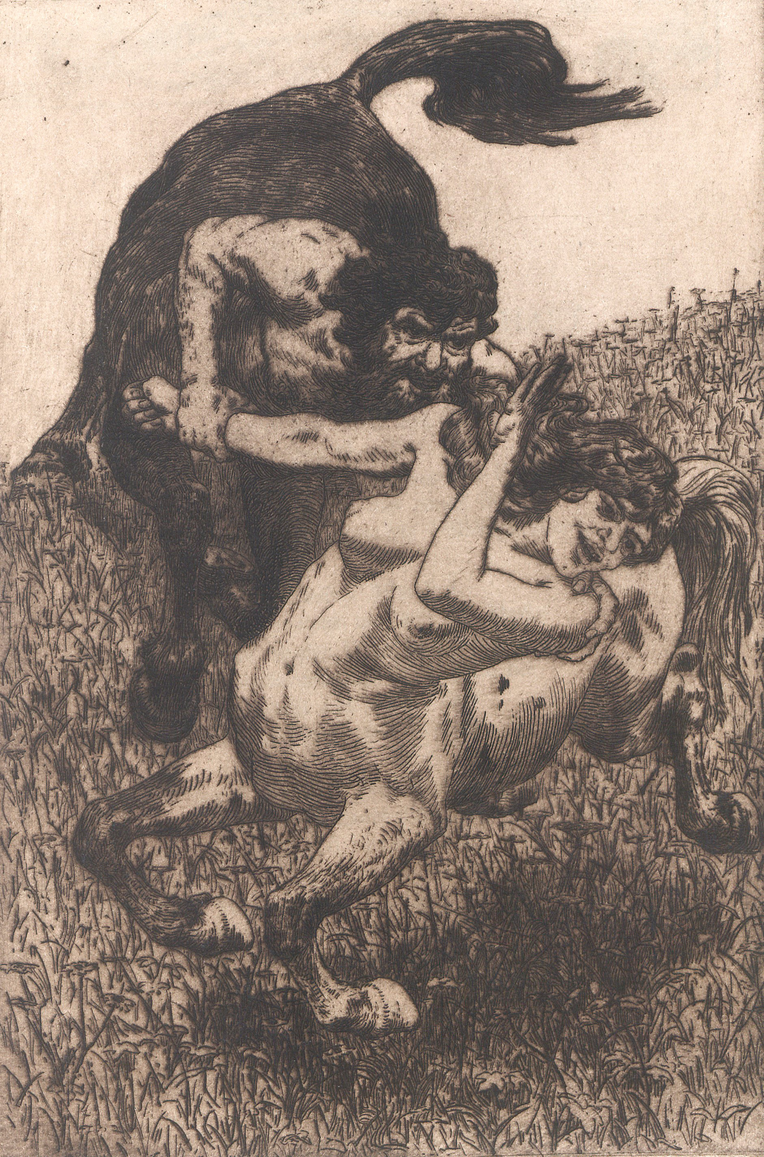 PAN (Vierteljahresschrift). Hrsg. von der Genossenschaft Pan. Heft 1 und 2 des II. Jahrgangs. 2 Bl., 180 S. Mit 8 Original-Radierungen von Max Liebermann, Walter Leistikow, Albert Krüger, Anders Zorn, Charles Maurin, Max Klinger, Otto Fischer, Max Pietschmann, 5 Original-Lithographien von Franz Skarbina, Otto Greiner, Hans Unger, Karl Mediz, Georg Lührig und 1 Original-Holzschnitt von M. Hönemann und mehreren montierten Abbildungen auf Tafeln sowie zahlreichen Abbildungen im Text. 37 x 29 cm. Illustriertes goldgeprägtes grünes OLeinen (etwas berieben und bestoßen) mit Rück- und DTitel. Berlin, Fontane & Co., 1896.