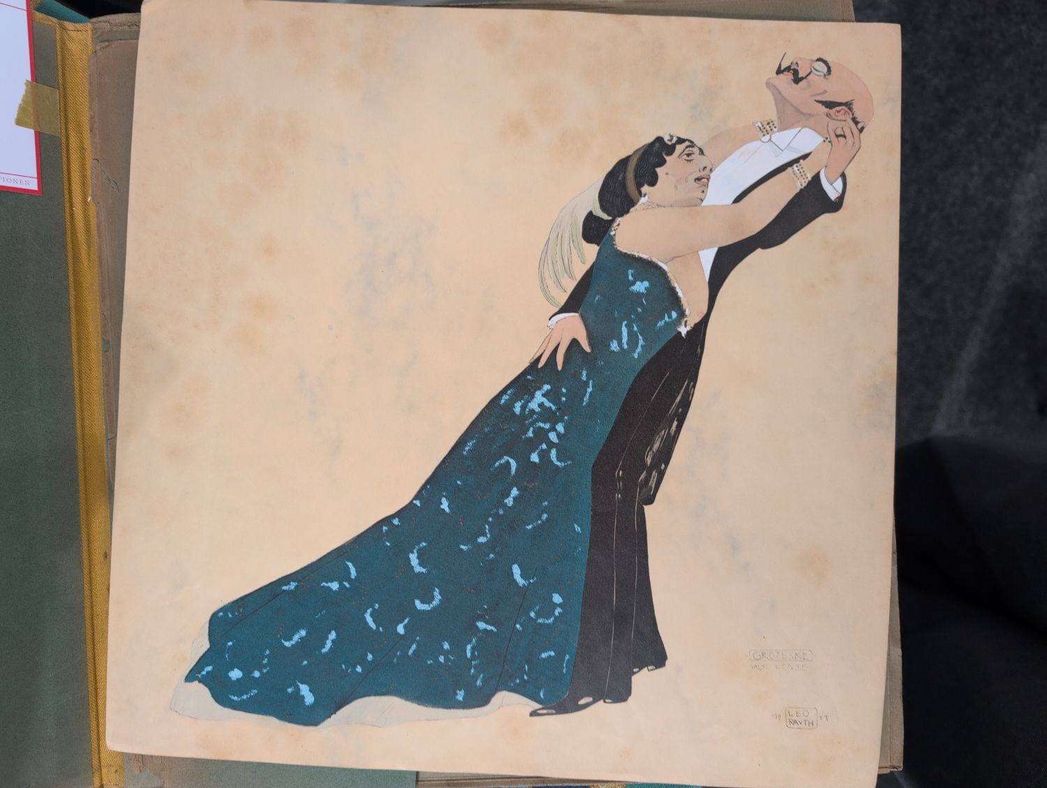 Der Maler und Graphiker Leo Rauth (1884-1913) lehrnte unter anderem bei Franz von Stuck, Ernst Schurth und Waldemar Friedrich. Die Tafeln zeigen wunderschöne Darstellungen verschiedener Tänzer in hübschen Kostümen zum Beispiel: "Bal Masque", "Hollandisch", "Ballgeflüster", "Grinolinen Tanz", "La belle Otero", "Solo-Walzer", "Brand Stiftung" und "Groteske". – Leicht stockfleckig sowie knickpsurig, sonst wohlerhalten. Die Figuren sind in kräftigen farben gehalten.