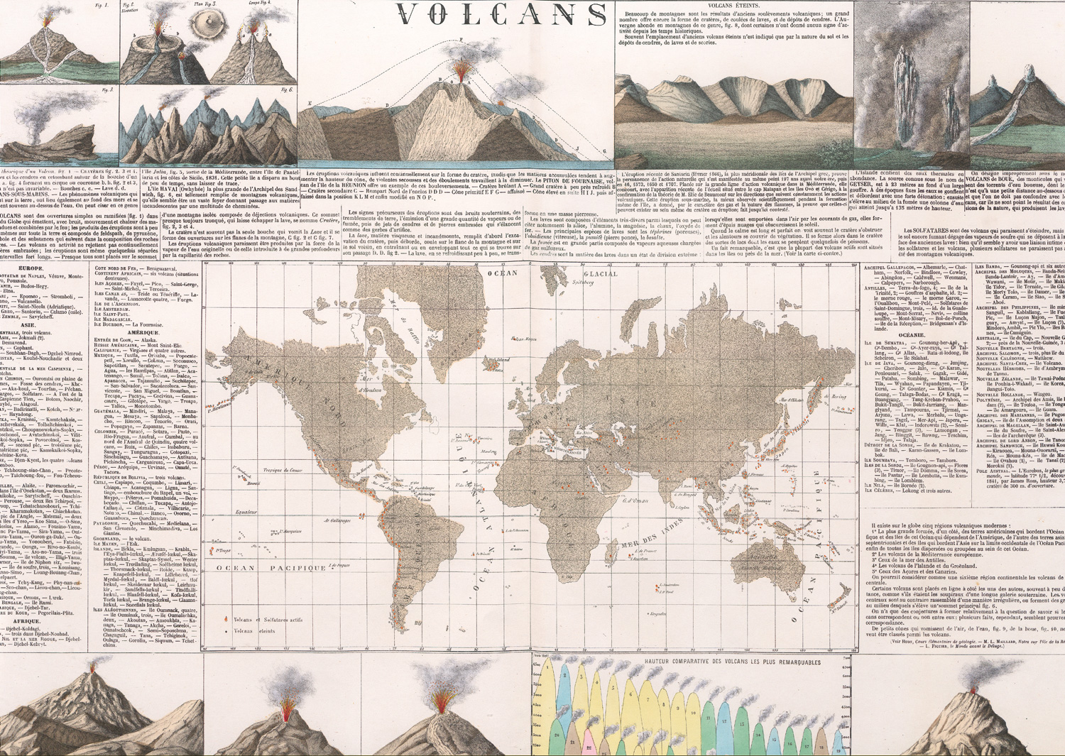 Bouasse-Lebel. Volcanos. Chromolithographie aus "Encyclopedie". 49 x 65 cm. Paris, Bousse-Lebel, 1852.