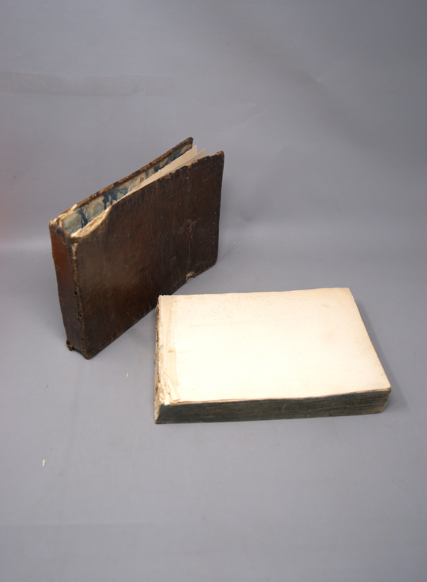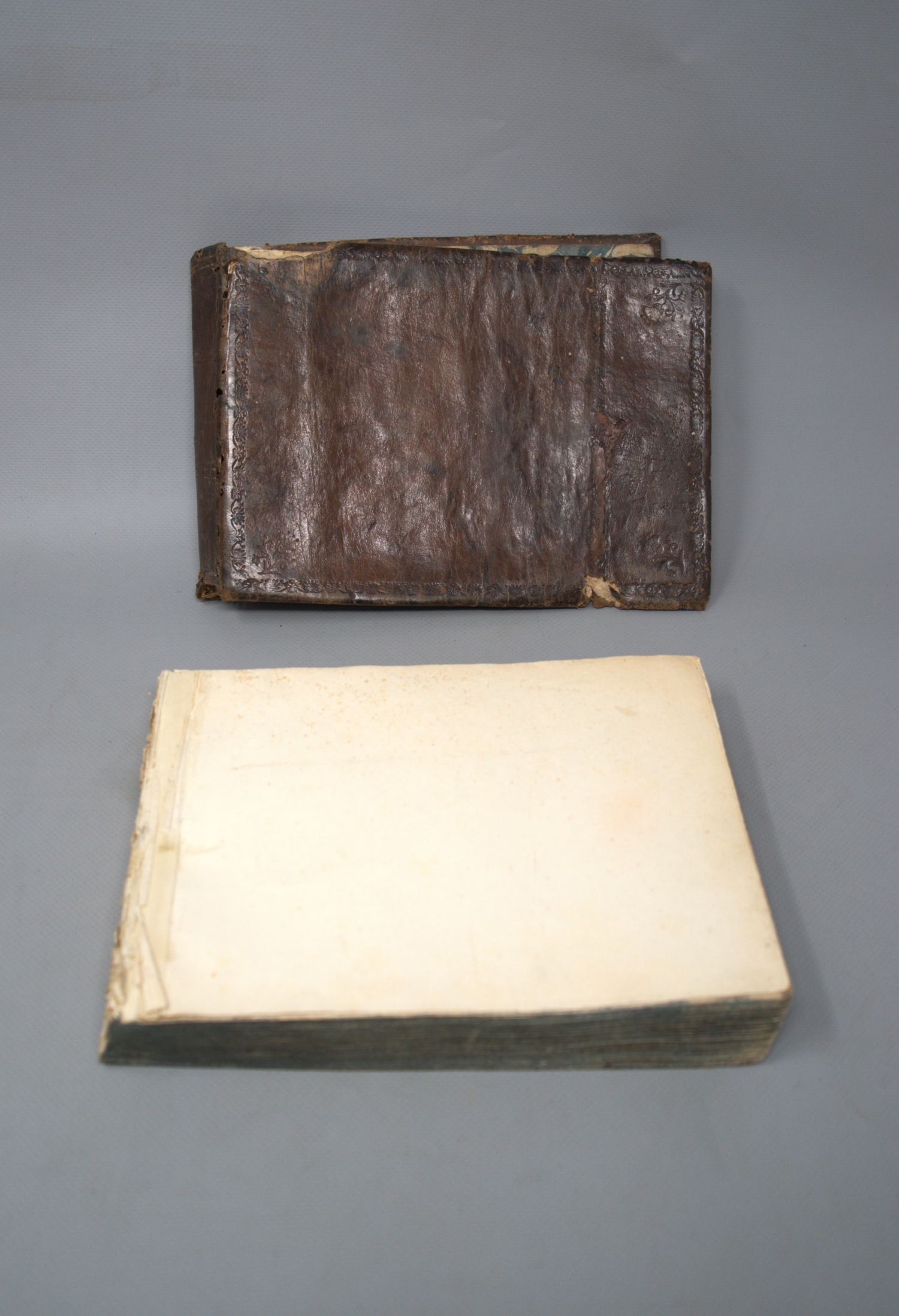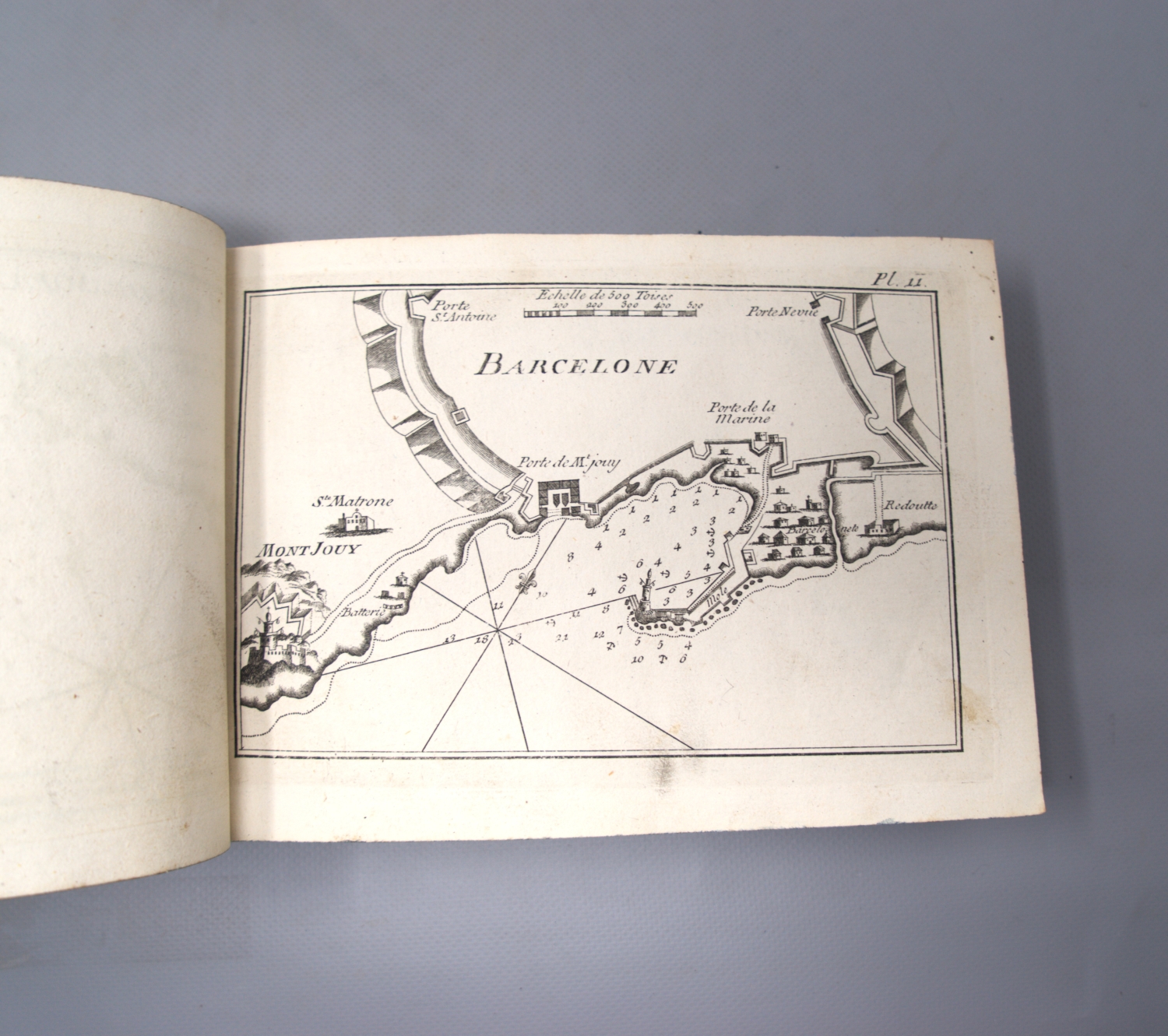 (Roux, Joseph. Recueil des principaux plans des portes, et rades de la mer mediterranée estraits, de ma carte en douze feuilles dediée a Mons.gr Le Duc de Choiseul ministre de la guerre et de la marine.) Mit 123 Kupferkarten. 16 x 23 cm. Leder d. Z. (stärker lädiert, mit Fehlstellen). (Livorno, Meucci, um 1810).