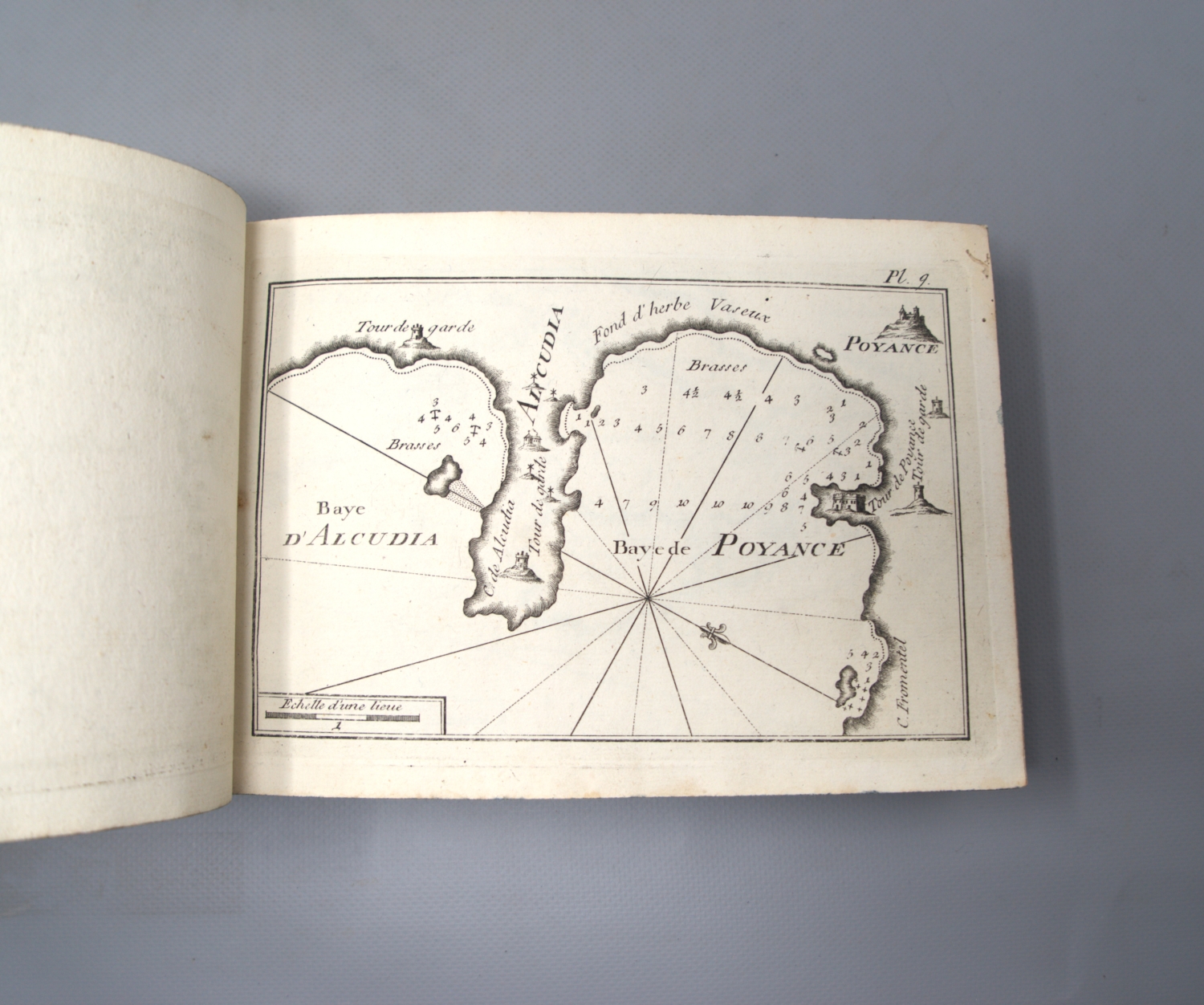 Spätere Ausgabe des Atlases zu den Häfen den Mittelmeers von Joseph Roux (1725-1793) ein französischer Hydrograph, Ingenieur und Kartenverleger. – Im Block gelöst. Mit Wurmgängen, leicht braun- und fingerfleckig und mit wenigen Randläsuren.