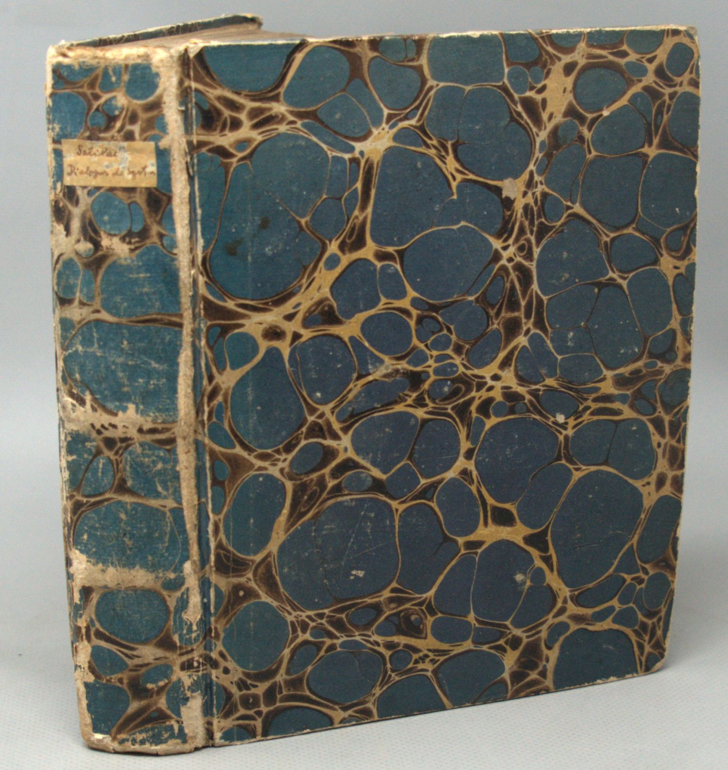 Galilei, Galileo. Systema cosmicum, in quo quatuor dialogis, de duobus maximus mundi systematibus, Ptolemaico & Copernicano, disseritur. Ex italica lingua latine conversum. 7 Bl., 495 S., 12 Bl. Mit Kupfertitel, blattgroßem gestochenem Portrait und einigen schematischen Holzschnittillustrationen. 19,5 x 15 cm. Marmorierter Pappband des 19. Jahrhunderts (berieben, Gelenke, Kanten und Kapitale beschabt; mit kleinem hs. RSchild). Straßburg, David Hautt für Elzevier, 1635.