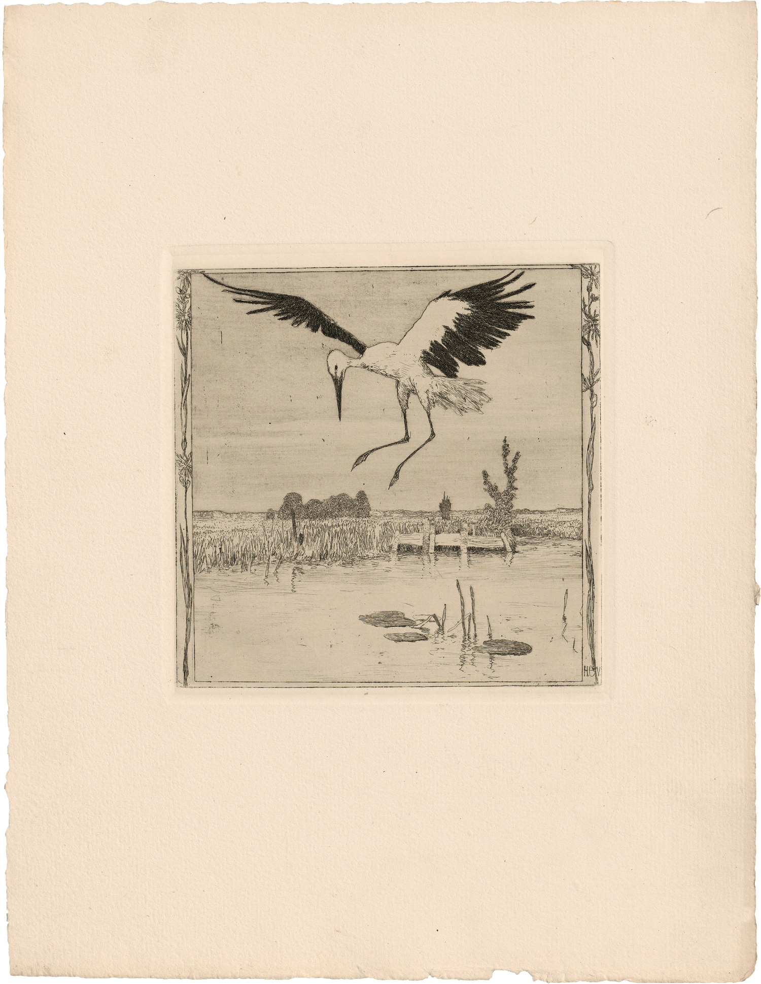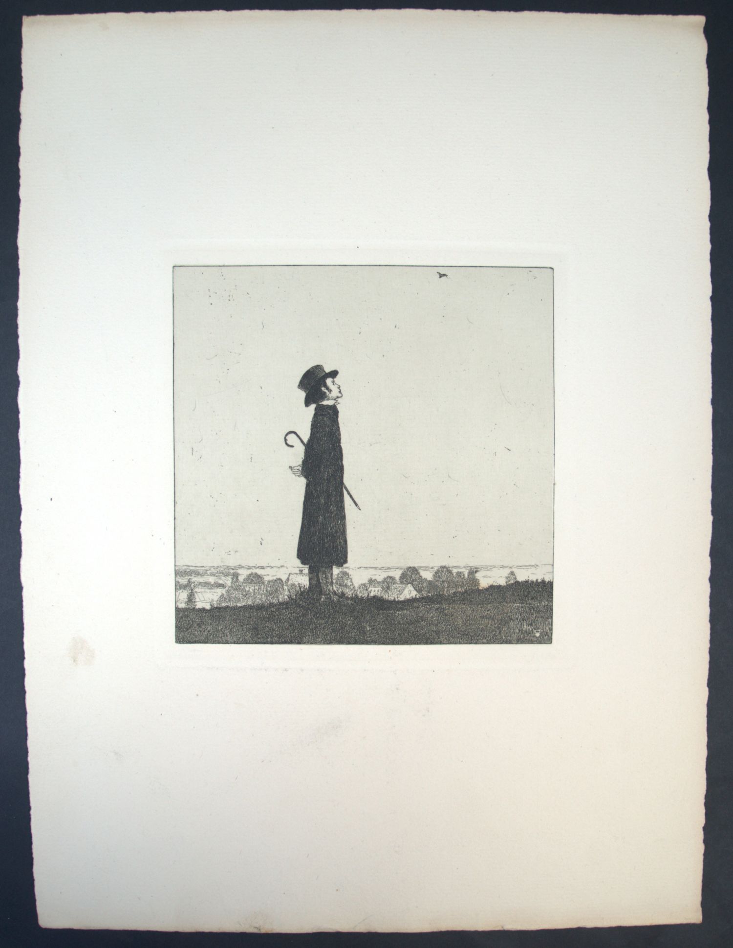 Vogeler fertigte bereits ab 1895 im Barkenhoff Probe- und Zustandsdrucke auf einer Radierpresse, die die Künstlergemeinschaft von Otto Felsing gekauft hatte. Die Auflagen der fertigen Kupferplatten wurden dann in dessen Werkstatt in Berlin gedruckt. – Prachtvolle, feine Drucke mit dem vollen Rand, sehr kontraststark und herrlich abgedruckt auf dem schweren Büttenpapier. Bemerkenswert sauber und frisch.