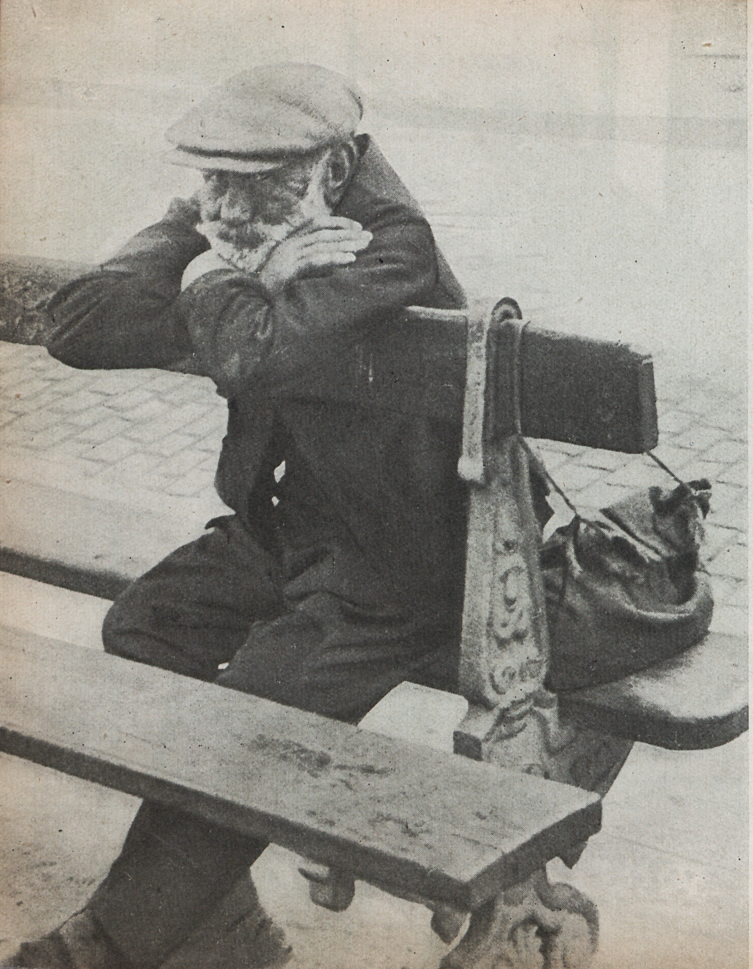 Parr I, 132-133. – Die berühmten Fotografien aus dem Leben der Metropole, der Wahlheimat Ehrenburgs. Stimmungsvoll fängt er das Milieu der einfachen Leute mit seiner Kamera ein. Neben den Fotomontagen, deren berühmteste Ehrenburg als Fotografen und schreibenden Journalisten zeigt, kümmerte sich Lissitzky auch um die typographische Gestaltung des Bandes. – Teils gebräunt und etwas fingerfleckig.