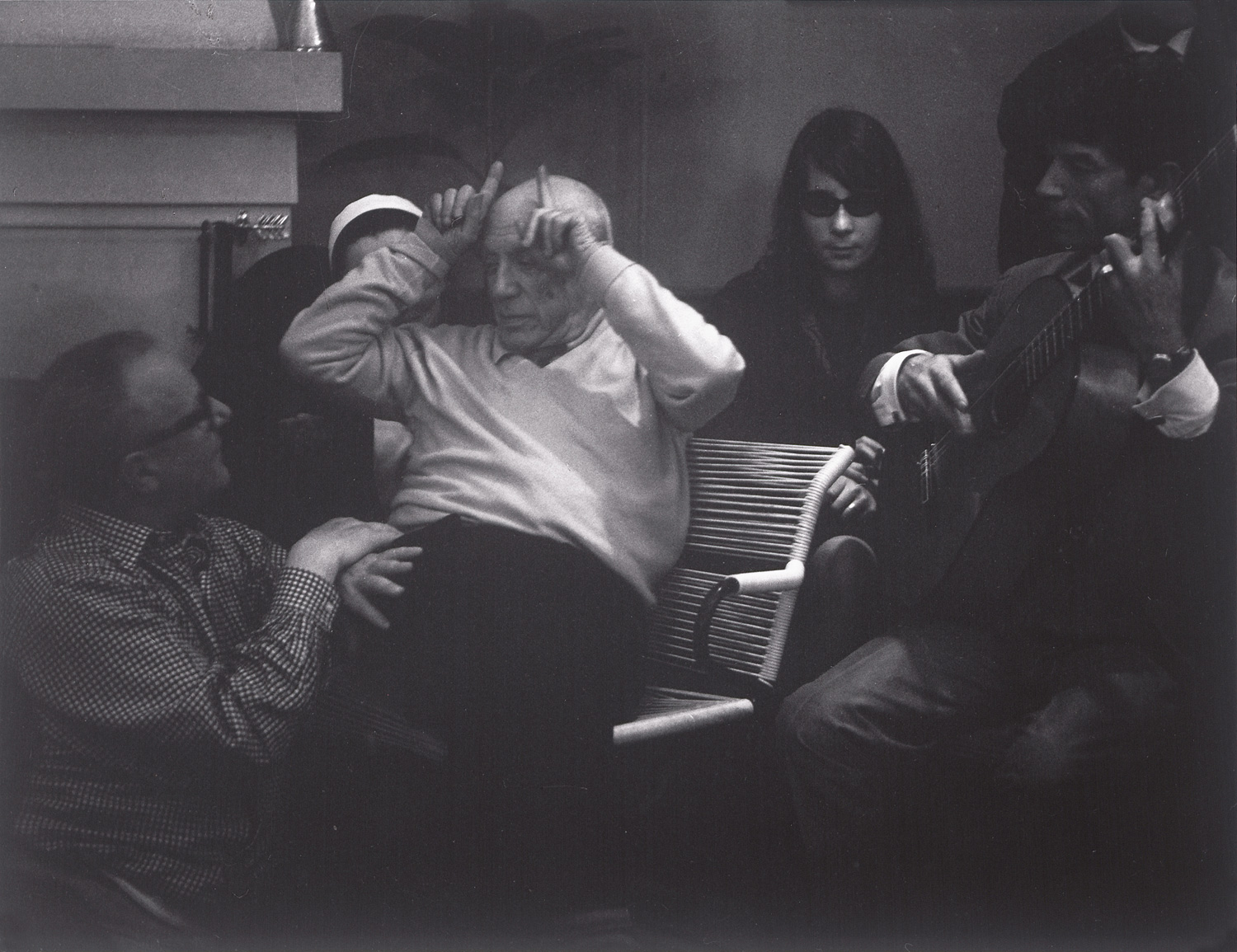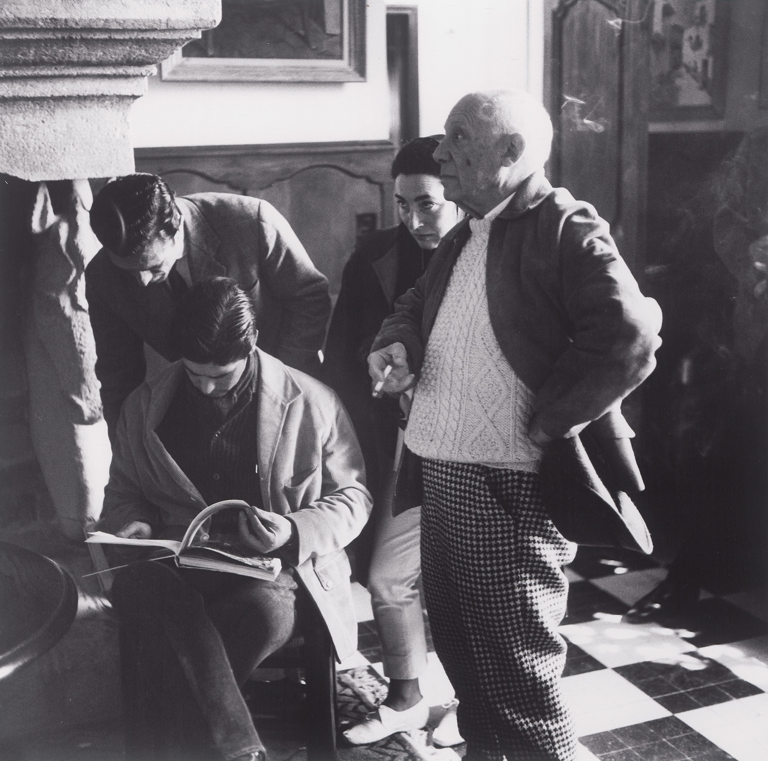 Eines von 10 nummerierten Exemplaren (Geamtauflage: 15). Die Mappe vereint 12 Fotografien des 1970 gestorbenen Roland Hehn, der Picasso im Kreis seiner Freunde im Jahre 1964 zeigt. Die Fotografien blieben bis zu dieser Edition unveröffentlicht. Mit Texten von Sebastian Goeppert und Stefan Soltek, die von Isabelle Caronins ins Französische übersetzt wurden. – Minimal fleckig. Die Fotografien allesamt sehr gut erhalten. - Selten.
