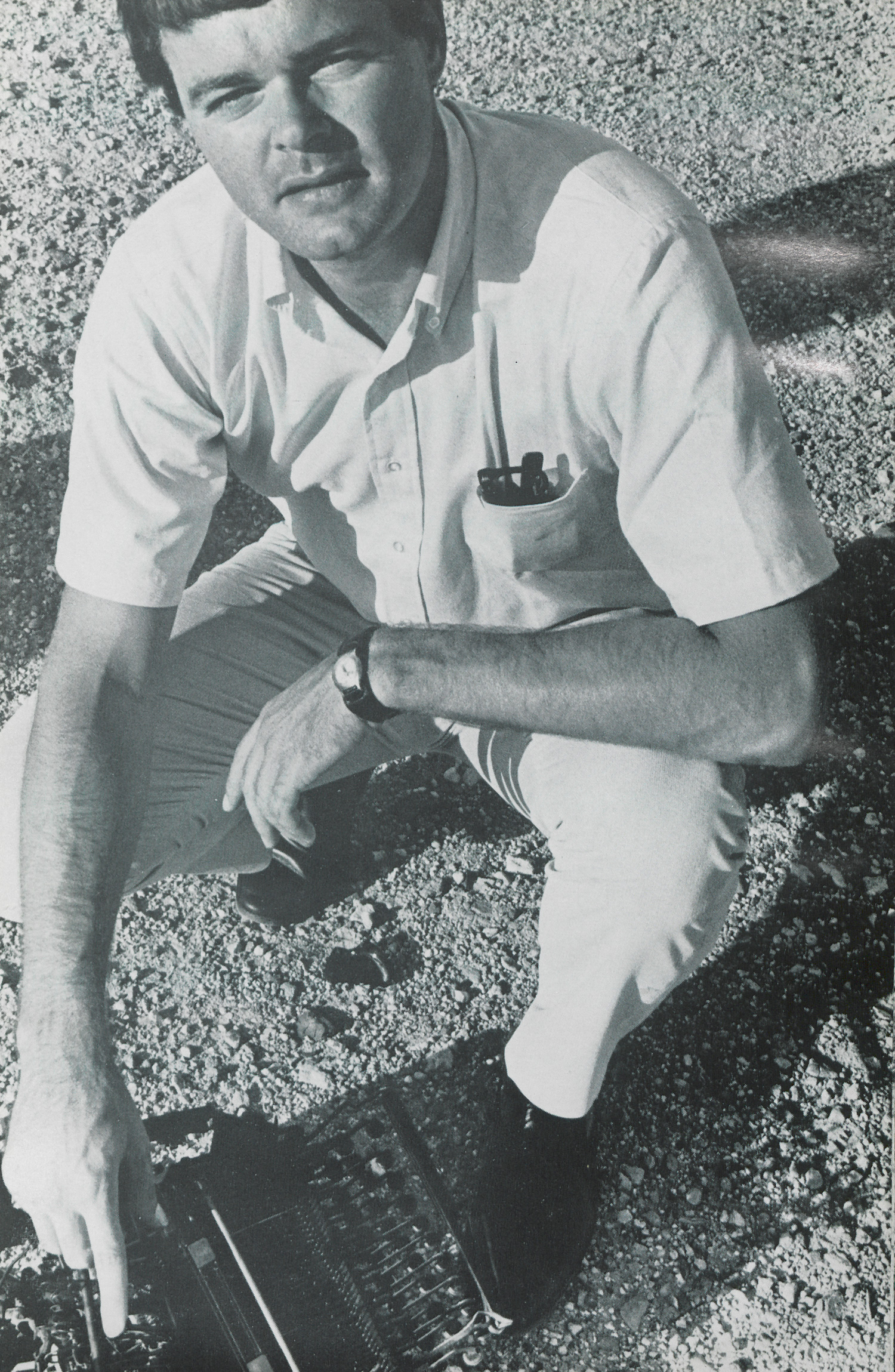 Erste Ausgabe der in kleiner Auflage erschienenen photographischen Dokumentation einer Aktion im Jahr 1966, bei der eine altehrwürdige, neuwertige Royal-Schreibmaschine (Modell X) auf dem U. S. Highway 91 bei Las Vegas aus einem fahrenden Auto geworfen wurde (Geschwindigkeit: 90 m.p.h./144 km/h). Ruscha war der Fahrer, Blackwell der Fotograf und Williams wuchtete das schwere Schreibgerät aus dem Fenster. Den Kern der Dokumentation bildet eine fotografische Untersuchung der über eine Strecke von 189 ft (57,6 m) verstreuten Überreste des "Typewriters". – Wasserrandig.