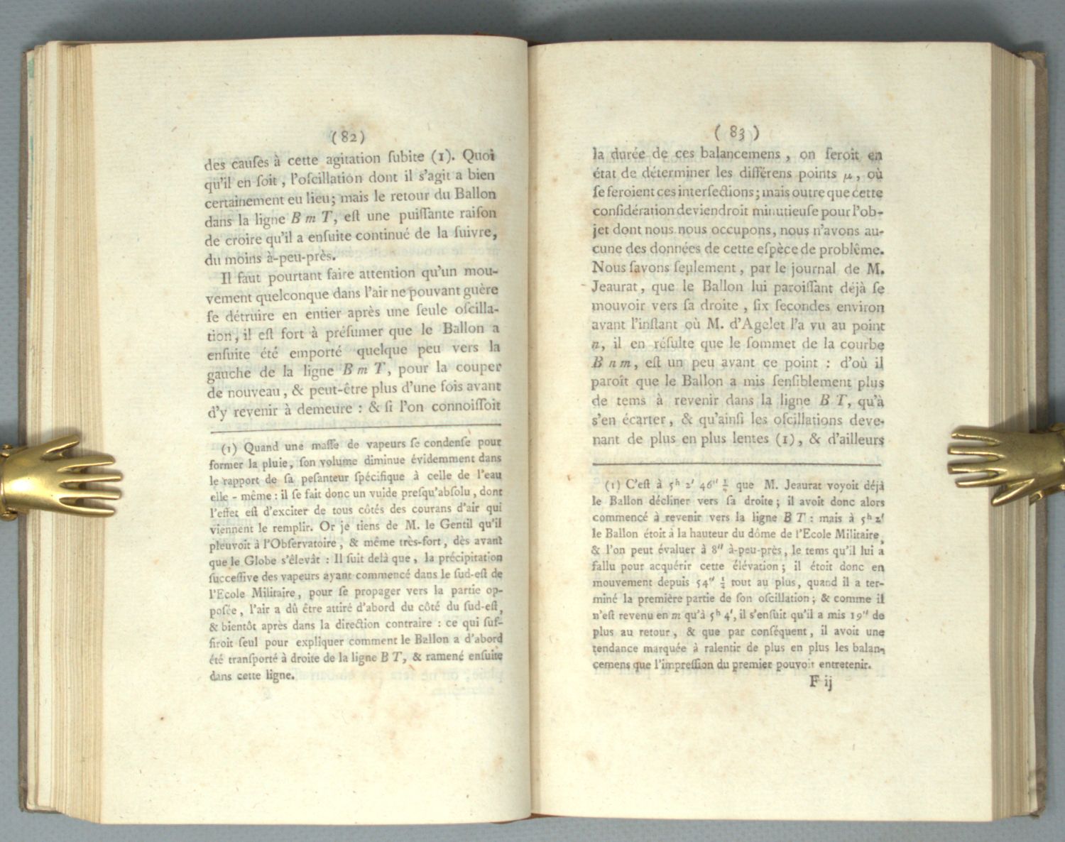 Die Rückseite der Tafeln in Bd. I enthält in zeitgenössischer Handschrift drei Gedichte (7 Seiten) von Gudin de la Brenellerie, Mitglied der Akademie von Marseille. "Als Zeitgenosse und glühender Bewunderer der Montgolfierschen Erfindung, knüpft er an sie die weitesten Hoffnungen für die Zukunft" (Jacobius, Luftschiff und Pegasus, S. 14). Es handelt sich um folgende Gedichte: I. "Sur le Globe ascendant du 27 aout 1783" (57 Verse). Dieses Gedicht stellt den "neuen Ikarus" noch über Columbus und Cook. Gudin erhofft die Vervollkommnung der Montgolfierschen Maschine durch Charles und Robert, "die sich eilen mögen, damit England nicht auch das Reich der Luft wie das des Wassers an sich reisse". Diese Spitzen gegen England haben Wieland in seinem berühmten Artikel (Deutscher Merkur 1783, S. 69) "Die Aeropetomanie" veranlasst, sich über die Aeronauten im allgemeinen und über die glühenden Verse Gudins im besonderen lustig zu machen. - II. "Vers adresses à M. Faujas de S. Fond" (68 Verse). - Diese beiden Gedichte sind abgedruckt im "Almanach des Muses", Jg. 1784, S. 25-27 und 177-79. - III. "Sur les voyages aeriens de MM. Charles et Robert" (100 Verse). Für dieses Gedicht konnten wir keinen gedruckten Nachweis feststellen. – Minimal fleckig, die Handschrift durchschlagend.