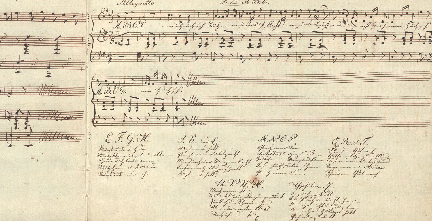 Enthält 22 Kompositionen, meist Lieder für eine Singstimme mit Klavierbegeleitung sowie das "Lied des Thaddäus" aus einem Singspiel von Hennig in einer gut lesbaren Abschrift der Zeit. Der 1765 in Treuenbrietzen geborene Friedrich Heinrich Himmel stand in der Gunst des Cello spielenden Friedrich Wilhelm II., war aber trotz seiner Kapellmeister-Stellung stets von Geldsorgen geplagt, die er letztlich vergeblich durch sein Komponieren und Konzertieren als virtuoser Pianist zu mindern suchte. Von Beethoven ist das spitze Bonmot überliefert, dass Himmel zwar ein "ganz artiges Talent besitze, weiter aber nichts". 1814 starb er an Herzinsuffizienz in Berlin und wurde vergessen. Sein Grab auf dem Dorotheenstädtischen Friedhof hat man irgendwann eingeebnet. – Etwas gebräunt und teils fleckig, insgesamt jedoch recht ordentliches Exemplar einer gut lesbaren Abschrift.
