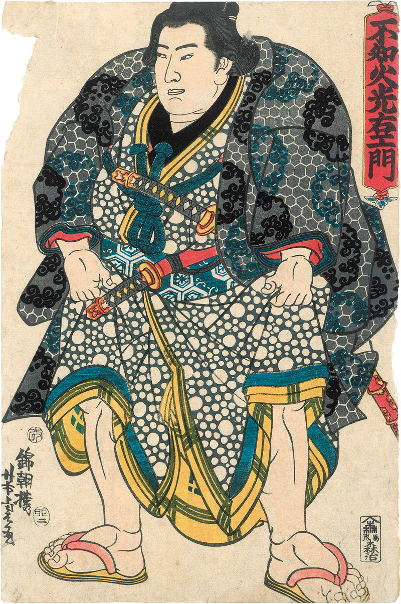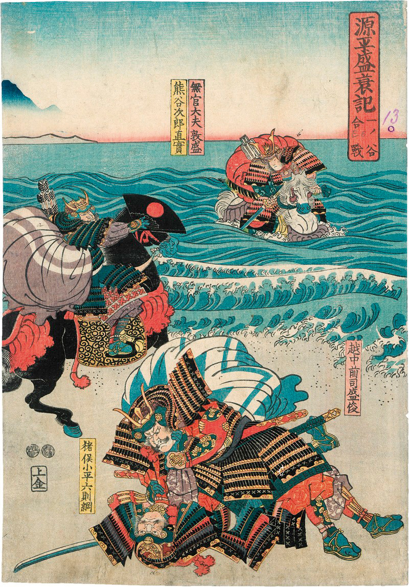 Konvolut von ca. 50 Farbholzschnitten verschiedener Künstler mit Darstellungen von u. a. Kriegern, Schauspielern, Legenden und Schlachten