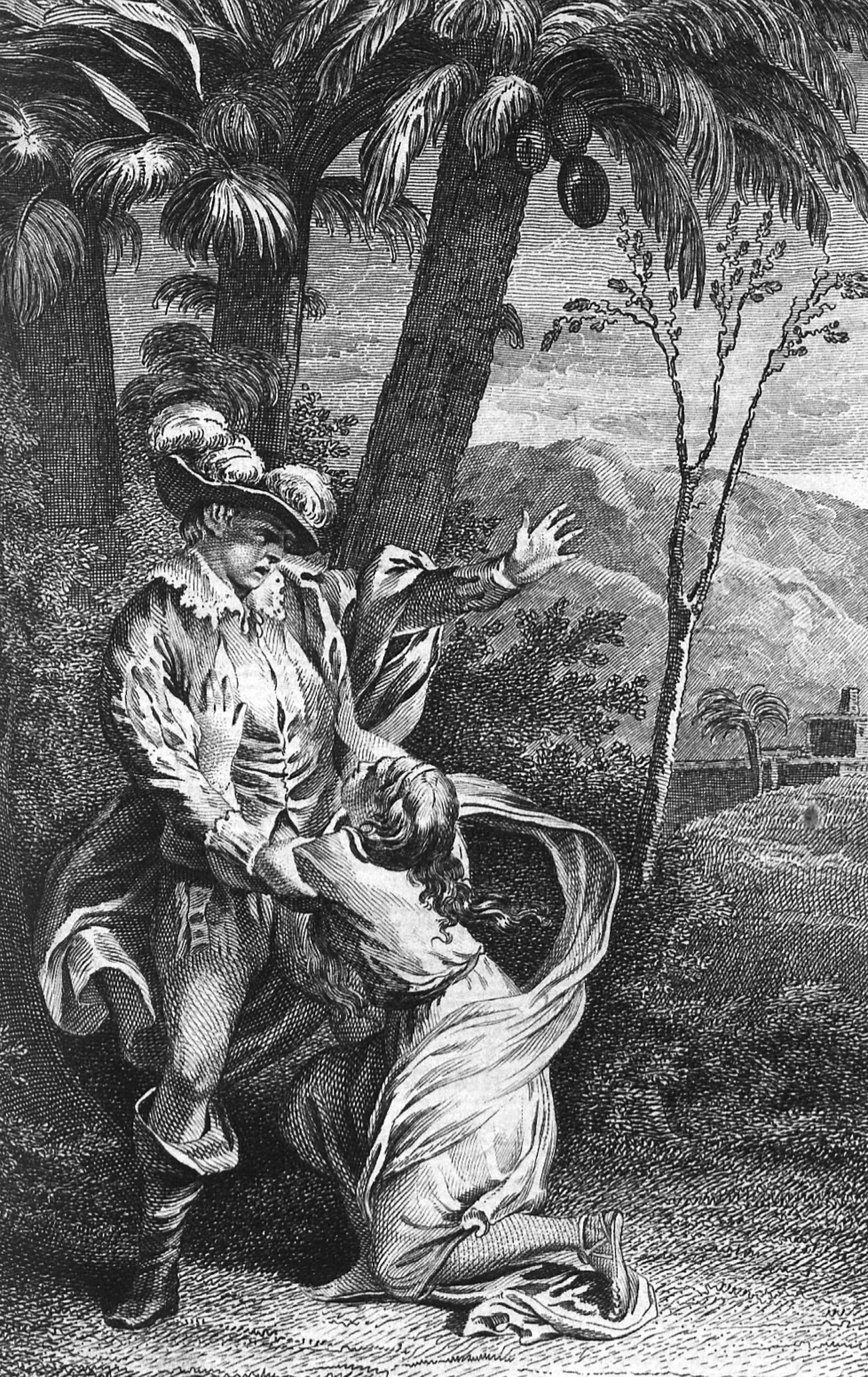 Marmontel, (Jean François). Les Incas, ou la destruction de l'empire du Pérou. 2 Teile in 1 Band. XXXVII, 254 S.; 2 Bl., 310 S. Mit 11 Kupfertafeln nach Moreau. 19,5 x 11,5 cm. Moderner marmorierter Halblederband. Bern und Lausanne, Société Typographique, 1777.